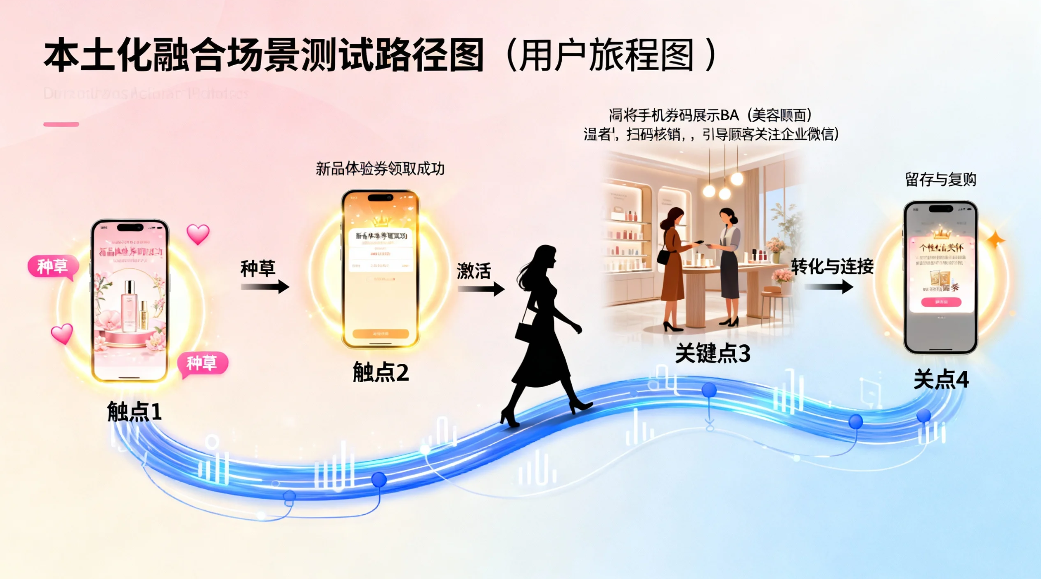 场景一:全渠道会员营销闭环。模拟:一位顾客在小红书看到广告,跳转到品牌微信小程序领取了一张新品体验券,然后到店使用。BA用POS扫码核销优惠券,并引导顾客关注企业微信。次日,总部通过企业微信向该顾客推送个性化关怀与复购券。请全程观察数据流是否通畅、各环节体验是否无缝。